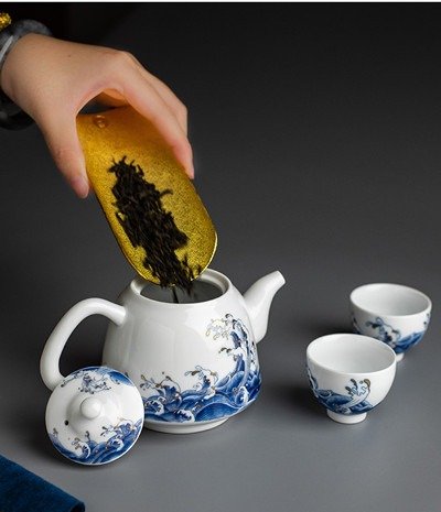 Après la fin de la dynastie Ming et le début de la dynastie Qing, le nombre de théières utilisées par le peuple a beaucoup augmenté et les théières sont devenues des objets de consommation courante. La boisson et le divertissement des invités sont progressivement remplacés par le thé. Les théières et les tasses à thé sont devenues des nécessités de chaque famille. Dans le sud de la Chine, la plupart des théières sont de petites théières à bec verseur. La plupart d’entre elles sont en porcelaine bleue et blanche. Leur forme est simple. Les paysages ou les fleurs et les oiseaux sur les théières sont vivants et ont une grande valeur artistique.